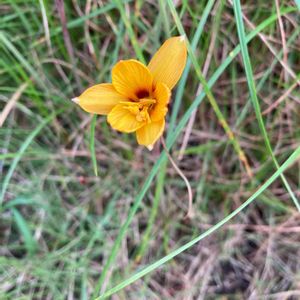 おはようございます。また雨降りです。そして、すごくムシムシしています。薄暗い朝の中、一際鮮やかな朱色にお花が浮いて出てくるようでした。線路脇のお花です。