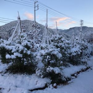 名古屋発の夜行列車降りたときから〜🎵 飛騨の高山駅は雪のなか〜🎶 庭木の小さな黒松の松つり雪降る前に間に合いました^_^; 30センチくらいの積雪予測してたけど5センチ程度で済みました。 過去に初雪が大雪で庭木がバキバキに折れた経験があるので今年は早めに雪囲いしました🍁。 紅葉が一瞬に雪化粧しました🍁。