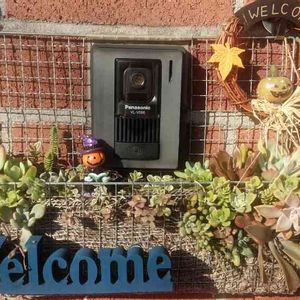 前にもpicしたバーベキュー網の寄せ植え インターホンにセットするとこんな感じ(^-^) ハロウィンバージョンです ( ´艸`)