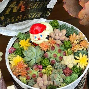 おはよーございます♡ あーっ!!って思った😍?? そうです!みんな大好きkaoruちゃんから 可愛すぎて鼻血でるプレゼントもらっちゃいました❤ スヌさんにはサブセシリス丼 サンタさんはちまちまお花畑にしたよ❤ のえるちゃんからもらった斑入りの子と るるちゃんちのセダムも入ってるよ~ (*´艸`)ププ❤ テッド似すぎー・`ω・) ス・スゲェ…❤ うーちゃんもそっくり~♡ ポンポンだから、ふわふわ具合までそっくりなのだ!❤ kaoruちゃんありがとう❤ カラフル多肉棚に並んだよ~🙌🌈✨
