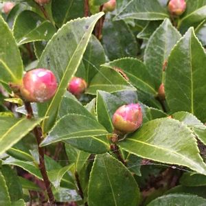 おはようございます😃庭に咲くこれからの花ですが、この蕾は山茶花でしょうか?椿でしょうか?教えていただければと思います。今日も1日元気で頑張りましょう😊😊😊