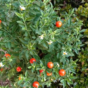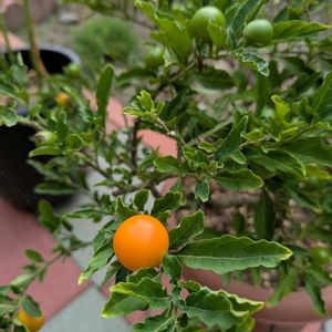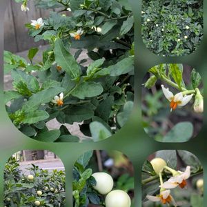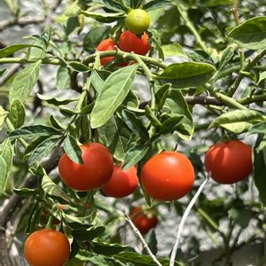 道端にタマサンゴが咲いてました。 この白い花びらがポロンと落ちてオレンジの実になるみたいですね。 2枚目、タマサンゴの花、ワルナスビとかイヌホオズキに似てますよね。 3、4枚目、ミニトマトに似てます…トマトお高い😭