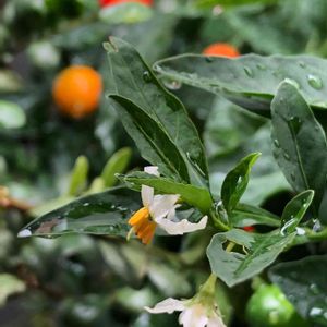 郵便局の花壇で咲いていました🏣 ほおずきくらいの実です🍊