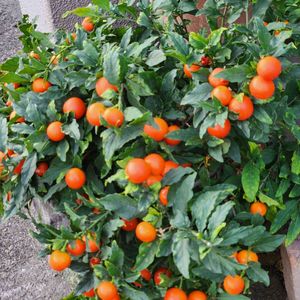 『タマサンゴ』 ナス科 常緑小低木 別名 リュウノタマ 散歩🚶♀️道 オレンジ色、グリーン色の玉が輝いてました🤭 花言葉 「神秘的」 「あどけない」 「あなたを信じる」 「愛情」