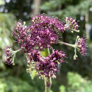 公園で別の花を見に行ったのだけど・・ふと振り返ったら濃い紫の花が咲いていました。 何かしら? 帰って調べたらノダケのようです。 ノダケ(野竹) セリ科シシウド属 大きな葉、背丈は1m以上になるのですね。 花には雄性期と雌性期があるのか〜 これは雄性期ね。と見ていたら 花期が9〜11月など秋になっていました(°▽°)! どうしちゃった〜⁉︎ 初めて会えて嬉しいけど、ほんとは夏過ぎて涼しくなってから咲くのだったのね。