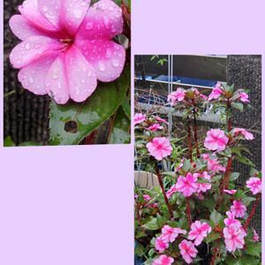 おはよう👋😃☀️ございます 今朝も🌧️です 放置のインパチェンスが沢山の花を咲かせてくれています🎵 こんなに咲いてくれるとは思わなかった~👍️ ローゼルも🌧️に打たれながら咲いてくれています👌 嬉しいです🎵😍🎵