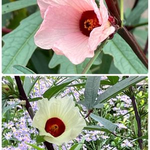✨✨ローゼル パープル✨✨ ✨✨ローゼル レッド✨✨ どちらも 可愛いお花です💕 赤い実を楽しむ為に 今年は 2本植えましたが レッドの実はまだら? お花も白い😆 茎は真っ赤なのに 何だか残念です💦 ✨✨5枚目はオクラです✨✨ ローゼルとそっくりです🎶