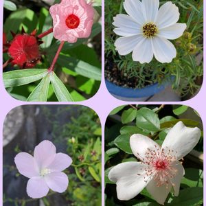 こんにちは✨😃❗ 昨日は暑い真夏のような太陽でした~☀️ 今日も晴れ☀️ でも少し風が心地よく感じます🎵 ロバツスとローゼルはもう、最後の花かなぁ~😆 コスモス🤍はまだこれから咲いて欲しい✨ ピンクサクリーナは虫にやられていびつに咲きました~😓 虫は元気✊‼️ スプレーにも負けないのでしょうか😭