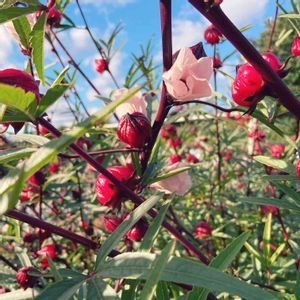💙゚*.空と植物.*゚♥️ ぉはょ━︎ヽ(`・ω・)ノ━︎ぅございます❣︎ ♥️11月も今日を入れて後2日😃 月に1回🌀pic〜今月は🔴ローゼルの赤い実で❣️ 🍀月曜日の朝から👀目がまわった方〜 ごめんなさ〜い❣︎ 聞いて ◝︎(๑⁺д⁺๑)◞︎՞ ないよ〜🌀