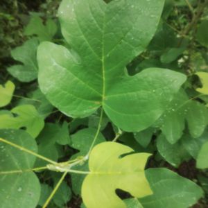 ユリノキ クヌギ(どんぐり) センニンソウの実 ユリノキの葉は先端が凹んでいて面白い。
