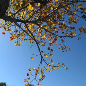 💚スライドしてね。💚 お昼のポ〰️がなりました。 赤城山と ユリノキ。 真っ青な空を 見上げました。 カラカラと 散っています。黄色い 葉っぱは 乾燥しきって‼️、 PM0:20に 撮りました。