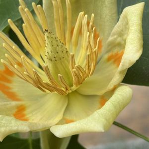 ユリノキ(百合の木)の花が咲いていました。 モクレン科の落葉高木で、花は少し見付けにくいです✨ 別名チューリップツリーで、チュ-リップのような形をしています🎶 花弁は黄緑色、基部にオレンジ色の班紋があります💕 ただ目視するのが難しいので、よく観察ができません😥