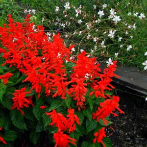 朝🐶散歩 赤のサルビア🎵 この花は霜が降りるまで、頑張ってくれます