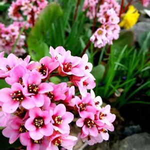 朝の🐶散歩。 クロッカスと、ユキノシタが、なんとも、渋い色合いに感じられ、よそ様のお庭ですが、(いつもですが笑)📷しました!❗