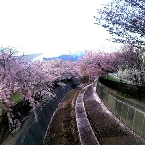 札幌。昨日の雨で、いつもの🐶散歩の道。花びらが散っていて綺麗でした。