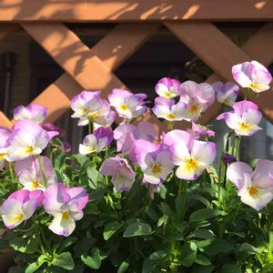 こんにちは😊 優しい色合いのビオラ😍 日差しを浴びて〜✨ 可愛いですね💕