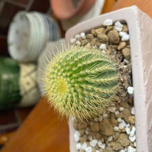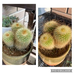 おはようございます🌵 金晃丸🌵ちょっと太ったかな❓ 金髪は伸びたようです👱♀️ ウチワサボテン🌵の👶赤ちゃんも大きくなりました。 これから寒くなるので🏠の中に入ってもらった方がいいのかな( '-'* )? 初めての⛄️❄️🎅🎄✨🎁🎂冬を迎えます🤔