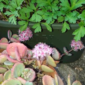 日高ミセバヤの花です🤗 いつもより花色のピンクが薄いです🤔 長雨と日照不足が原因だと思う🤔🤔 この後紅葉させなきゃ😆 ガーデニングブログでも紹介してます → balcony.osayuta.com