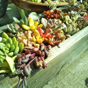 この冬ちょっと買いすぎたかな… そのおかげで先日作ったウッドプランターが埋まってきました。 朝お水あげたあとのキラキラがきれい(*´艸`*)