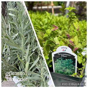 ダメになったラベンダーの代替を探しに行って見つけました ラベンダーはグロッソ ちゃんと育ちますように ミントはストベリーの香りがするものです 甘いストロベリーではなく、草っぽい青い香りの方ですが、ちゃんとイチゴっぽいと感じます ストロベリーアイスクリームを作ったときにピッタリ