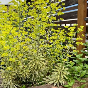 『ユーフォルビア アスコットレインボー』♡♡ 実家のお庭でーすぅ 昨年、移設したユーフォルビア。気づけば巨大化🤣🤣🤣 このサイズだとカッコイイなぁ~👍 右下の🌱は、ストロベリーミント。勝手に増殖しようとしてますな😅