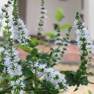 暑い 暑い ベランダで がんばる ストロベリーミント お花が 咲いてます🌼 お庭だと すぐに 虫が ついちゃう💦