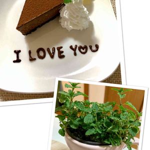 ちょっと早めのバレンタイン♡ 14日はお互い予定があるので、昨日チョコレートチーズケーキをあげました。 そこに最近迎え入れた、ストロベリーミントを乗せました。 ストロベリーミントは葉が小さくて、普通のミントより飾りに向いていて◎ 旦那さんが喜んでくれてよかった☺️💕