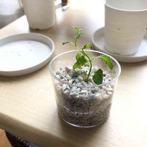 水に挿してたストロベリーミント 根が出て来たのでハイドロカルチャーに挑戦! うまく育つかな☘️