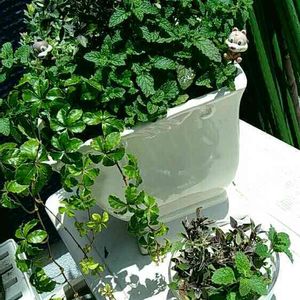 ミント2種、寄植えの奥側。 ストロベリーミント。 甘いイチゴの香りがしてイイ感じ♪