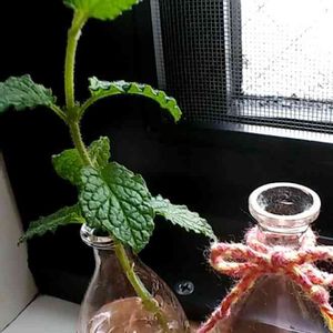 香るハーブ🌿 ストロベリーミント🍓 葉っぱ🌿を洗ってます。 陰干しして、ストロベリーミントティ🍓☕️を楽しみたいです。