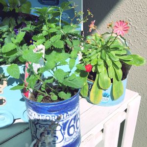 本日の日々草とハーブたちです。ハーブはどんどん成長してきて、だいぶ伸びてきました😆 ただ、昨夜見た時に、日々草の鉢の周りにナメクジが...しかも何匹もいるーーっ!😭とりあえず塩で駆除しましたが、今朝コーヒーの粉末を撒いてみました。効果がありますように... 他にもいい方法があればご教授ください!