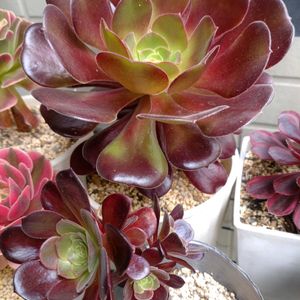 雨の日はアエオニウムに目が行きます☔️ 真ん中がペタンコになる子 キューっと集まって来る子 面白いな〜と写真を撮りました♪