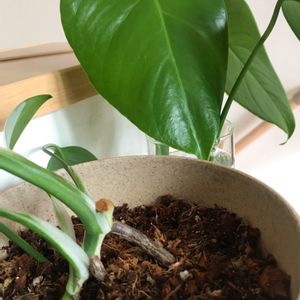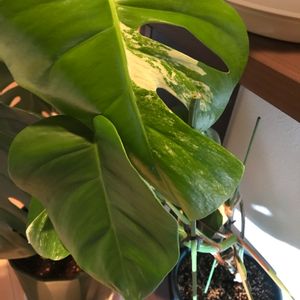 久々の登場- ̗̀( ˶^ᵕ'˶)b 我が家の今1番美しい斑入りモン様! お迎えしてから水挿ししていて花瓶の中根っこグルグルになったので先月鉢上げしました♪ 特に調子崩すことなく安定してくれました✧ ʕ๑•ɷ•๑ʔ 葉っぱも顔よりおっきくて白斑も傷まない!.。゚+.(*''*)゚+.゚ なんと丈夫な子なんでしょう♡ あとは新芽さえ展開してくれたら言うことなし! 成長してくれたらるりすさんやさくらさんちのモン様みたいに登らせるんだ(∩´∀`∩) はよクルエラみたいになっておくれー♡