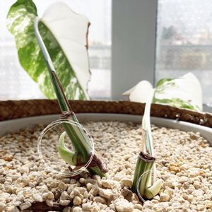 今週はよく晴れた関西地方♪ 土日は雨のようです(¯―¯٥) 最近土日ばかり天気が悪くて意地悪ですよね( *´˘`*ꐦ) この晴れのおかげで我が家のアロイドたち新芽ラッシュです(⑉´ᗜ`⑉) こちらは我が家で1番派手なモン様!ホワイトタイガーの新葉♡ 2回りくらい小さい葉っぱだけど、斑はかなり派手!!しかも窓もあいてるし切れ込みしっかり!(๑•̀ㅂ•́)و✧ カッコ良い!! 支柱が必要になるのはこの子が1番目ぽいです(*´˘`*)♡ フィロデンドロンフロリダゴーストも新葉沢山だしてくれてるし、オキシカルジウム達も新芽ラッシュ! どの子も一生懸命成長してくれてます♡感謝(˶ˊᵕˋ˵) あと我が家のスペシャルなモン様も新芽をツンツン伸ばし中☆。.:*・゜ すんごく楽しみです(⸝⸝ ´艸`⸝⸝) また開いたら投稿するぞー!