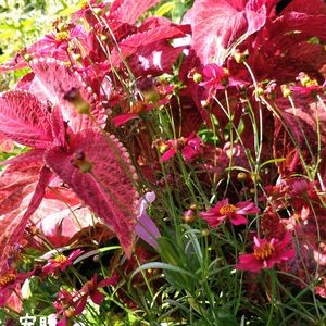 今日は湿度が高くてキツイです🥵 局地的に豪雨じゃなくて満遍なく恵みの雨をお願いしたい🙏 1 暑さに負けない真っ赤なコリウスとコレオプシス💕 2 バラ・カラーオブジュピターが開きました🌹🩷 この暑い中、すごいなぁ。