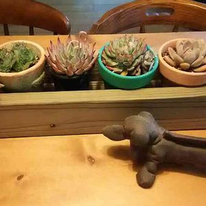 四十郎さんからのサブライズプレゼント🎁連休にはこのまま棚に置けるように初DIY 頑張るぞ‼ 四十郎さんの愛犬クウちゃんのように長いプランター可愛い❤ 置き物のDAKSは靴用の泥除けU^ェ^U
