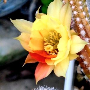 2024.07.01 エキノプシス系のサボテン錦から素敵な花が咲きました🌵 綺麗な黄色で庭に太陽が昇った感じです。 ただ残念なのが天気が大荒れで花が一日でダメになりました。 雨避けはしてますが湿気が酷く対処しきれず。 一日だけでしたが大満足でした。 連続投稿失礼しました。 先に載せとこうと思った最近の4種を投稿させて頂きました。 前回の通り、次回からは暫く睡蓮のみになると思いますのでよろしくお願いします。 その間に撮影したものは秋以降に改めて載せると思います。