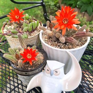 サボテンのお花が咲きました🎵 ①紐サボテン白檀(黄花)に、素敵なお花が咲いています💕 ②玉サボテンのこの子も、綺麗な色合いで咲きました❣️😃✨