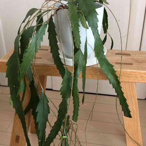 10年くらい前に頂いた植物。多肉かも? 時々細い茎を1メートルくらい出して、先端からノコギリ状に膨らんでいく謎の植物。
