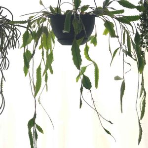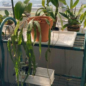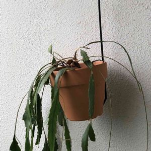 素焼き鉢にサボテン用土で植え替え、ベランダの明るい日陰に吊るしました。 根腐れ状態です。時折伸ばしていた長い枝はより良い生育環境を求めていたのでしょう。先ずは乾燥させ、根の定着を目指します。アドバイスありましたら、よろしくお願いします🙇♀️