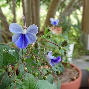 GSで大好きになったクレロデンドルム ブルーウィング(英名ブルーバタフライ)苗で買い求めようやく咲きました😍💗✨ 乱舞とはいきませんが、思った通りとっても可愛く素敵な蝶々💕✨❣️