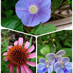 GSを始めて明日で一年❣️ 皆様、いつも楽しい時間をありがとうございます(*^^*)🙆 一年前、何もわからずに 庭のブルーバタフライをupしてドキドキで投稿したのを思い出しています🤗 一年間突っ走ってきたけど🤭 二年目は少し落ち着いて 投稿も少なくしなきゃ…と 反省もちゃんとしています😉🤭 皆様、二年目もどうぞ宜しくお願いします<(_ _)>❣️ こぼれ種から巻きついている朝顔と、切り戻しして再び開花中のエキナセア、そして記念のブルーバタフライ💞