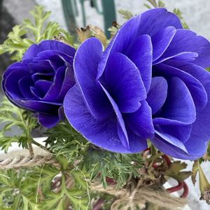 今日のお花 アネモネ ① 1月撮影 八重咲アネモネ 今は花がない状態です ② 今朝撮影 アネモネ ポルト どちらも初めて育ててるので 次の花も咲いてくれるのかとか いろいろ心配しながらです😅