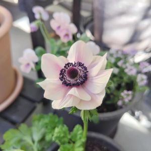 アネモネ・ポルト(多分パール)。 蕾の状態で迎えたので、どんな色合いのお花が咲くかわからず楽しみにしていました。かわいいお花が咲いて嬉しいです。