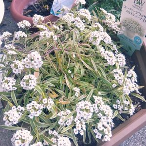 スーパーアリッサム•∴*.𓈒𓏸❁∴•.𓈒𓏸. フロスティナイト 可愛い白い小花🤍🤍🤍 2年目を迎える 最近植え替えた株 酷暑を超えて 𓈒⋆*꙳*⋆𓈒.•♡ 涼しくなってから 花がまた咲き出して𓈒.𓏸.𓈒.•* ¨̮♡. 小さい株は 2023秋花苗アンバサダー苗 約1ヶ月株•𖤣𖥧*𖤣𖥧 ぐんぐん成長 .𓈒.•*𓏸𓈒•♪ ハリがある元気な斑入り葉が こんもりして来てgood 可憐な小花そして斑入り葉 香りまで𓈒⋆꙳⋆𓈒。.•♡ 大好きなお花です(❁ᴗ͈ˬᴗ͈)