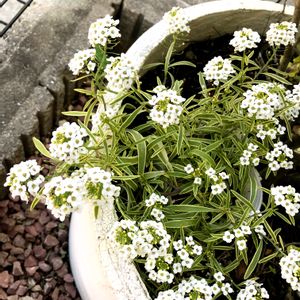 斑入りアリッサム ❀フロスティー ナイト❀ アブラナ科 ニワナズナ属 お迎えしたアリッサム💕 朝日が当たって‥✨✨✨