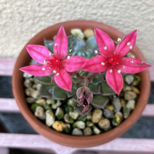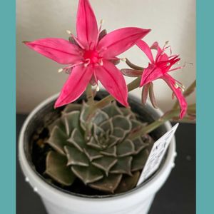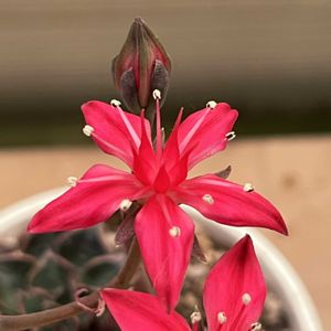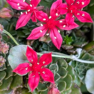 初めてこの花を見たのはgs💠 それから、この多肉を探してました🙌 赤い星形の大きめの花、シベの白が、また可愛い😍💕多肉にしては珍しく派手な花✨✨ 出会えて嬉しい😁🎶