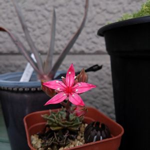 グラプトペタルム タキタスキングスター このタイプの多肉さんは集めてないのですが、この子の赤花は格別でついコレクションしてしまいました。