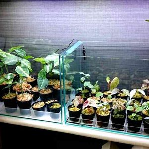熱帯魚屋さんでgetしたLED設置完了✨ スポットな赤と白メインで赤青少し入ったの2つ。 昨冬にダメにしちゃったユーフォさん系とか ダメになったら凹むアガベとかを移動したよ☝ もぅ少しだけ置けるから耐寒温度調べながら室内移動する予定。 あっコウモリさん、ドアノブにかけれるね☝
