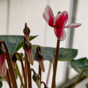 ①②今朝のシクラメン 今年も窓辺で咲き始め昼頃にはクレパス🎨で彩られたような開いたお花見れるかな💖 ③昨日の蕾が今朝 開き始めてました 蕾もたくさん見られ楽しみです